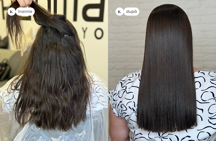 Proceduri premium de îndreptare, keratină, netezire și hidratare, nanoplastie și reconstrucție capilară pentru regenerare și hidratare profundă, potrivite pentru toate tipurile de păr.